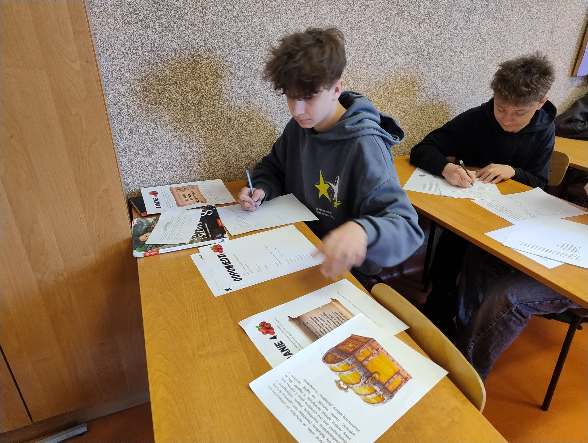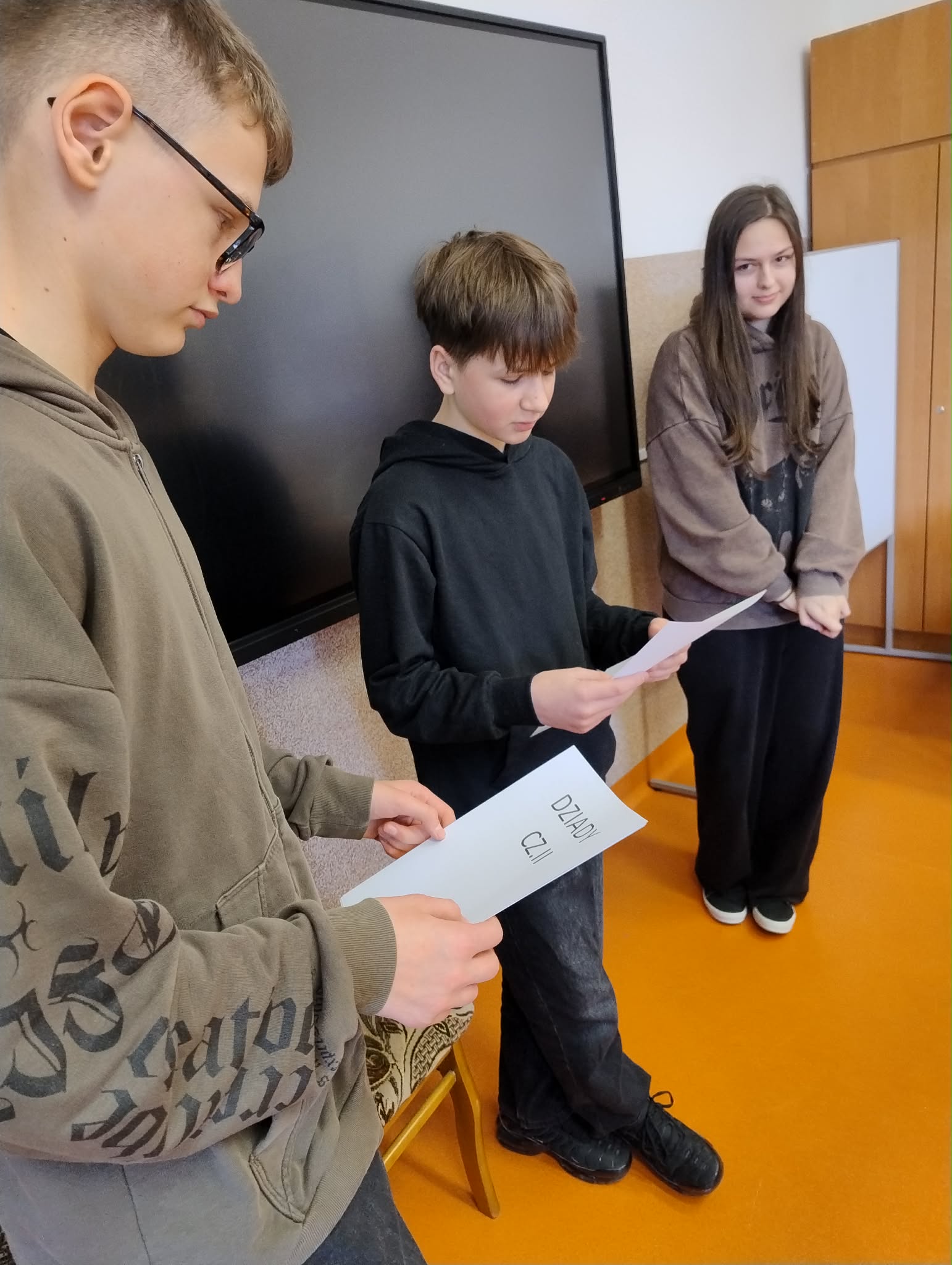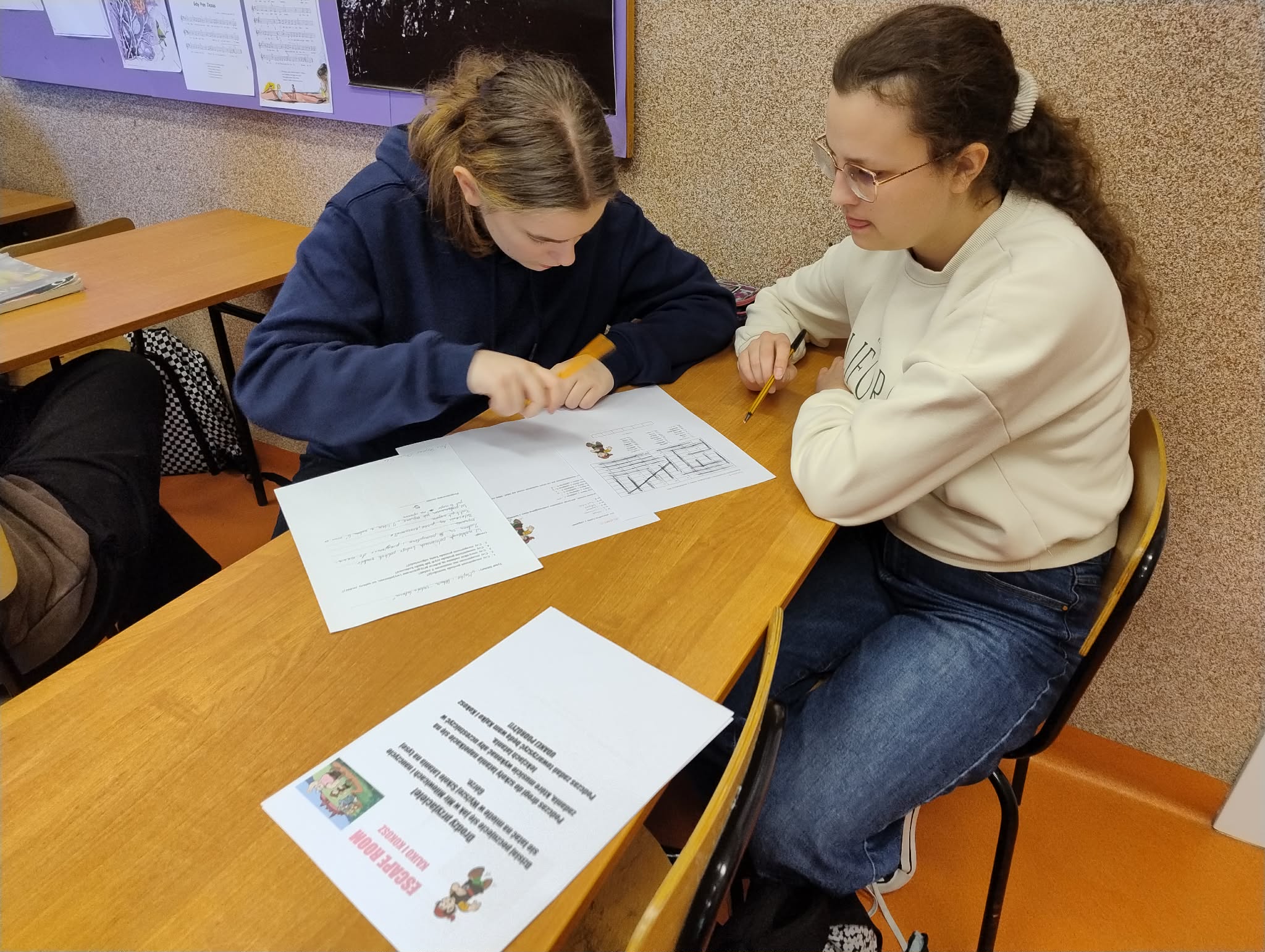 Uczniowie klasy 8 przygotowali własne escape roomy oparte na lekturach omawianych w klasach 4–7. Wśród nich znalazły się m.in.: „Akademia pana Kleksa”, „Opowieści z Narnii”, „Opowieść wigilijna”, „Kajko i Kokosz”, „Hobbit”, „Zemsta”, „Balladyna”, ballady Mickiewicza, „Chłopcy z Placu Broni” oraz „Dziady cz. II”. Pracując w parach, uczniowie tworzyli zagadki, pytania i zadania sprawdzające znajomość treści oraz najważniejszych motywów. Była to nie tylko powtórka przed egzaminem ósmoklasisty, ale także okazja do wykazania się kreatywnością i umiejętnością pracy zespołowej. W kolejnym etapie uczniowie rozwiązywali escape roomy przygotowane przez kolegów i koleżanki. Sprawdzali poprawność pytań i odpowiedzi oraz oceniali poziom trudności i pomysłowość zadań. Każda para przygotowała również krótką recenzję ocenianego escape roomu, wskazując jego mocne strony oraz elementy do poprawy.