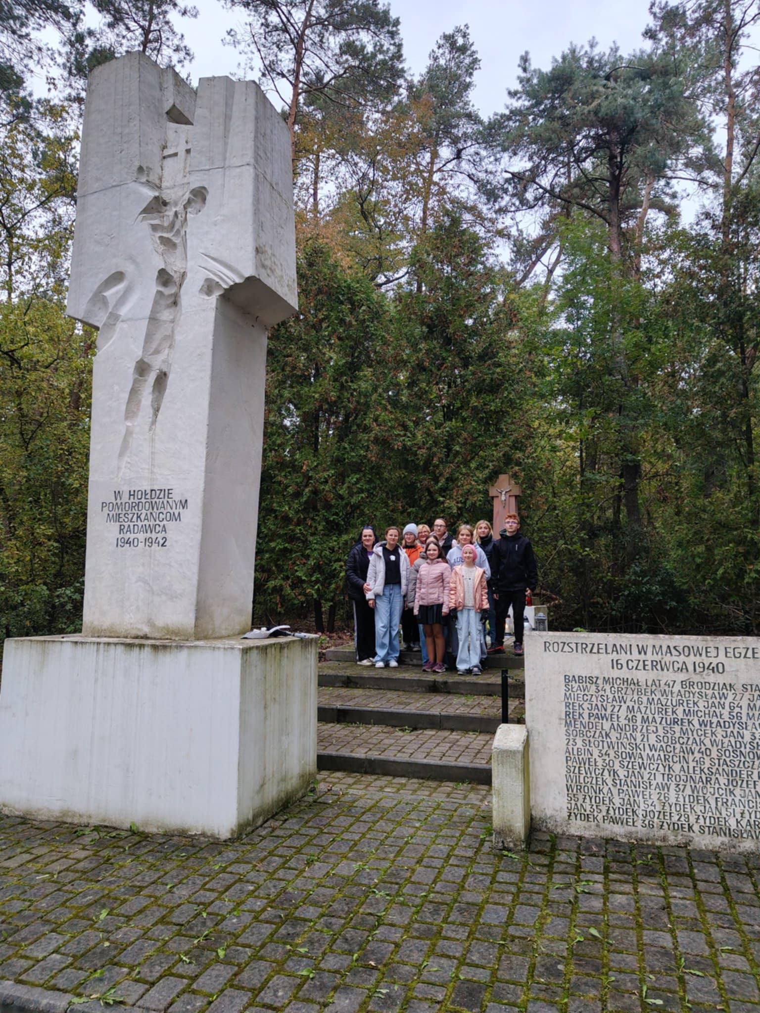 Dnia 16 października 2025r. uczniowie klasy VIII wraz z rodzicami wybrali się na Mogiłę Pomordowanych podczas II wojny światowej. Miejsce to znajduje się w lesie w Radawcu Dużym i upamiętnia tragiczne wydarzenia, jakie miały miejsce 16 czerwca 1940r. Uczniowie i rodzice uporządkowali teren wokół Mogiły oraz zapalili znicze. Jest to cykliczne działanie społeczności naszej szkoły.