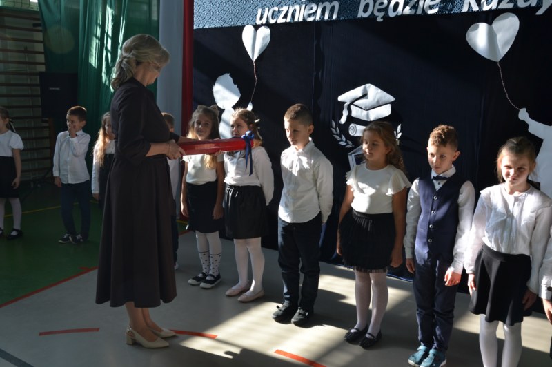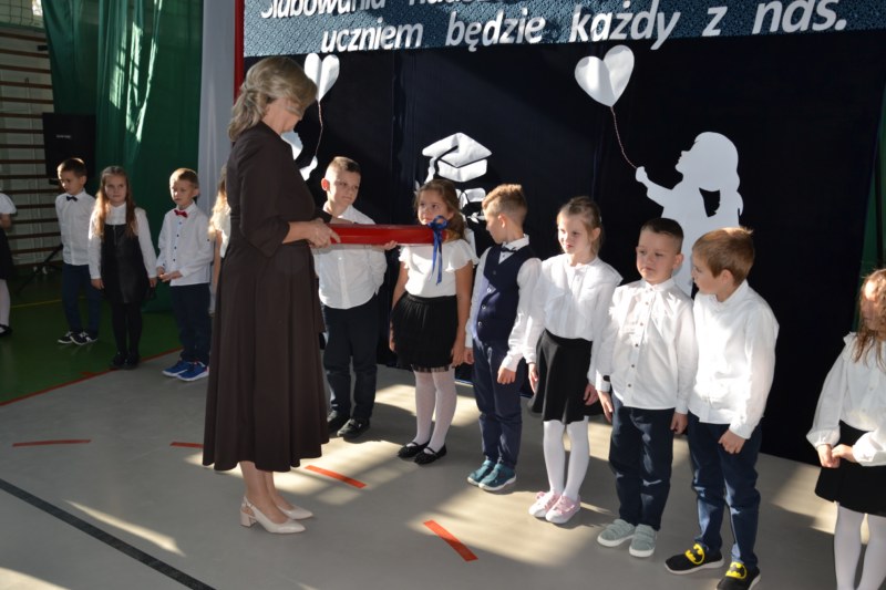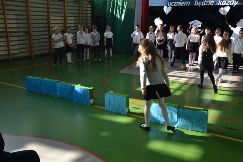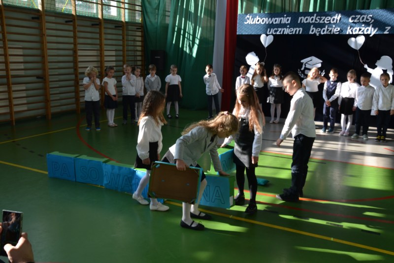 16 Października w naszej szkole odbyła się Uroczystość Pasowania na ucznia 1 klasy. Dzieci pięknie zaprezentowały się na forum szkoły. Wykazały się pięknym śpiewem , znajomością zasad bezpieczeństwa ruchu drogowego, sprawnego liczenia i czytania. Dzieci zostały pasowane na uczniów 1 klasy przez Panią Dyrektor i otrzymały wspaniałe upominki.