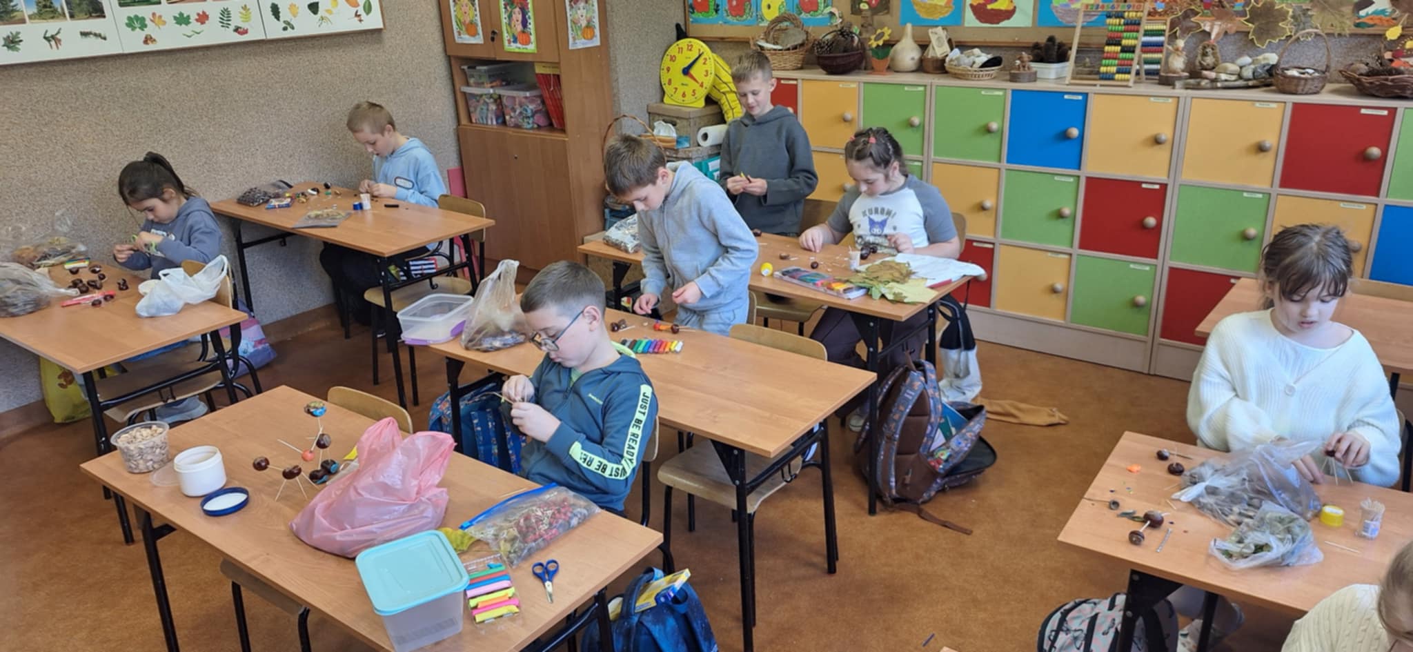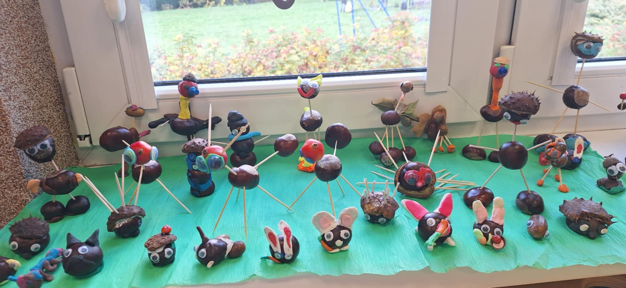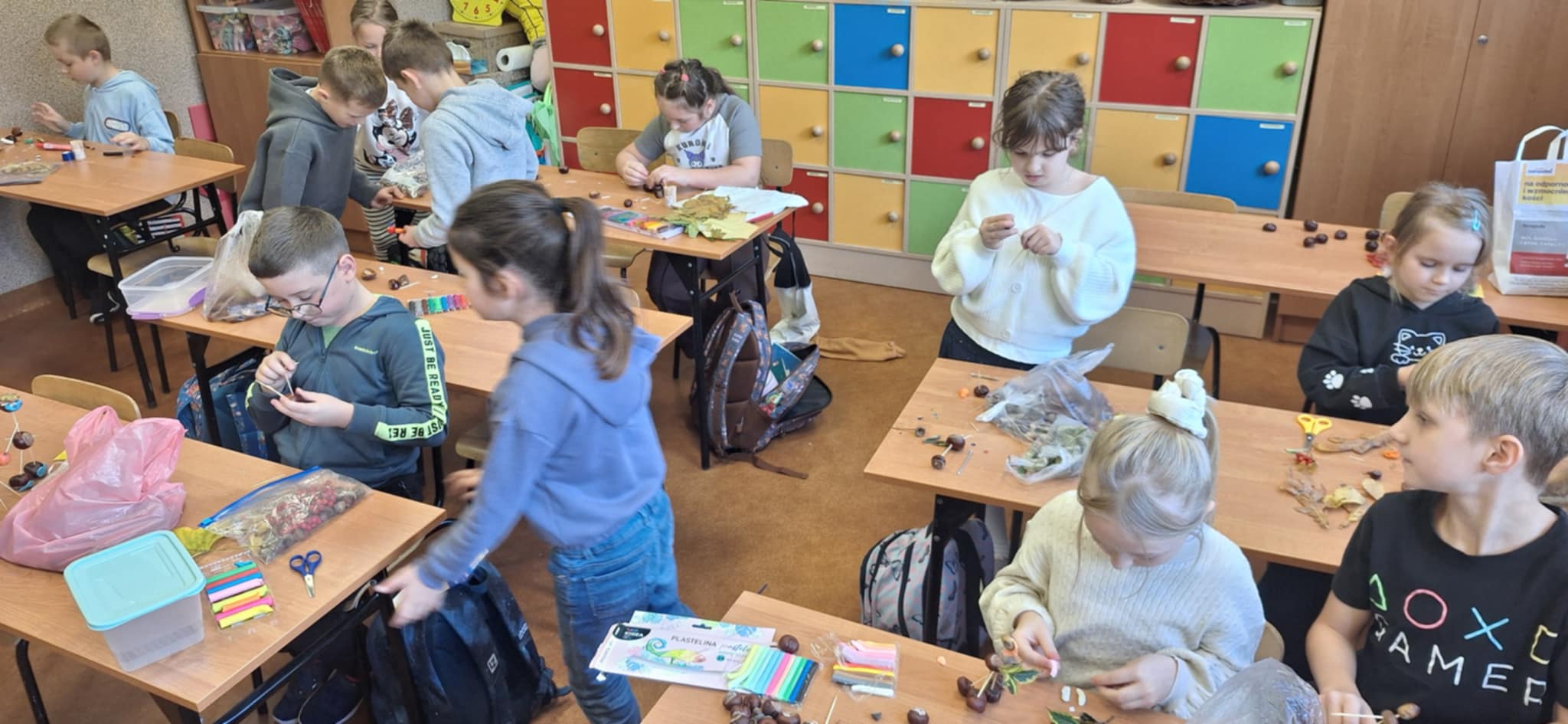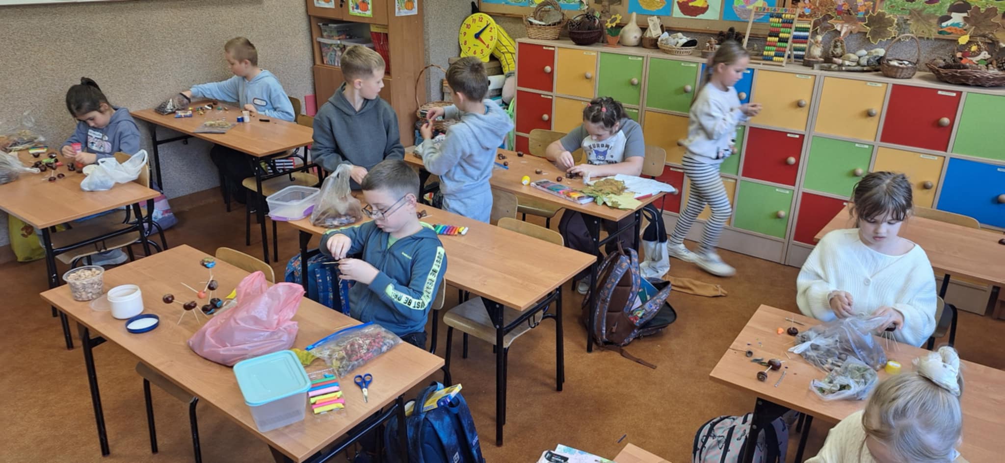 13 października w kl. II b trwały intensywne prace z użyciem kasztanów, żołędzi, plasteliny i wykałaczek. Uczniowie robili różnego rodzaju łodziki, zwierzęta i inne stworki. Wszyscy pracowali wytrwale i z dumą prezentowali swoje dzieła.