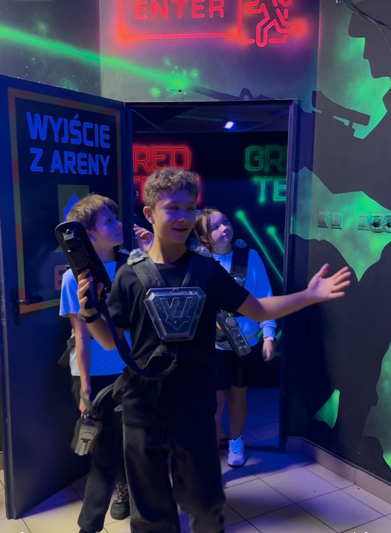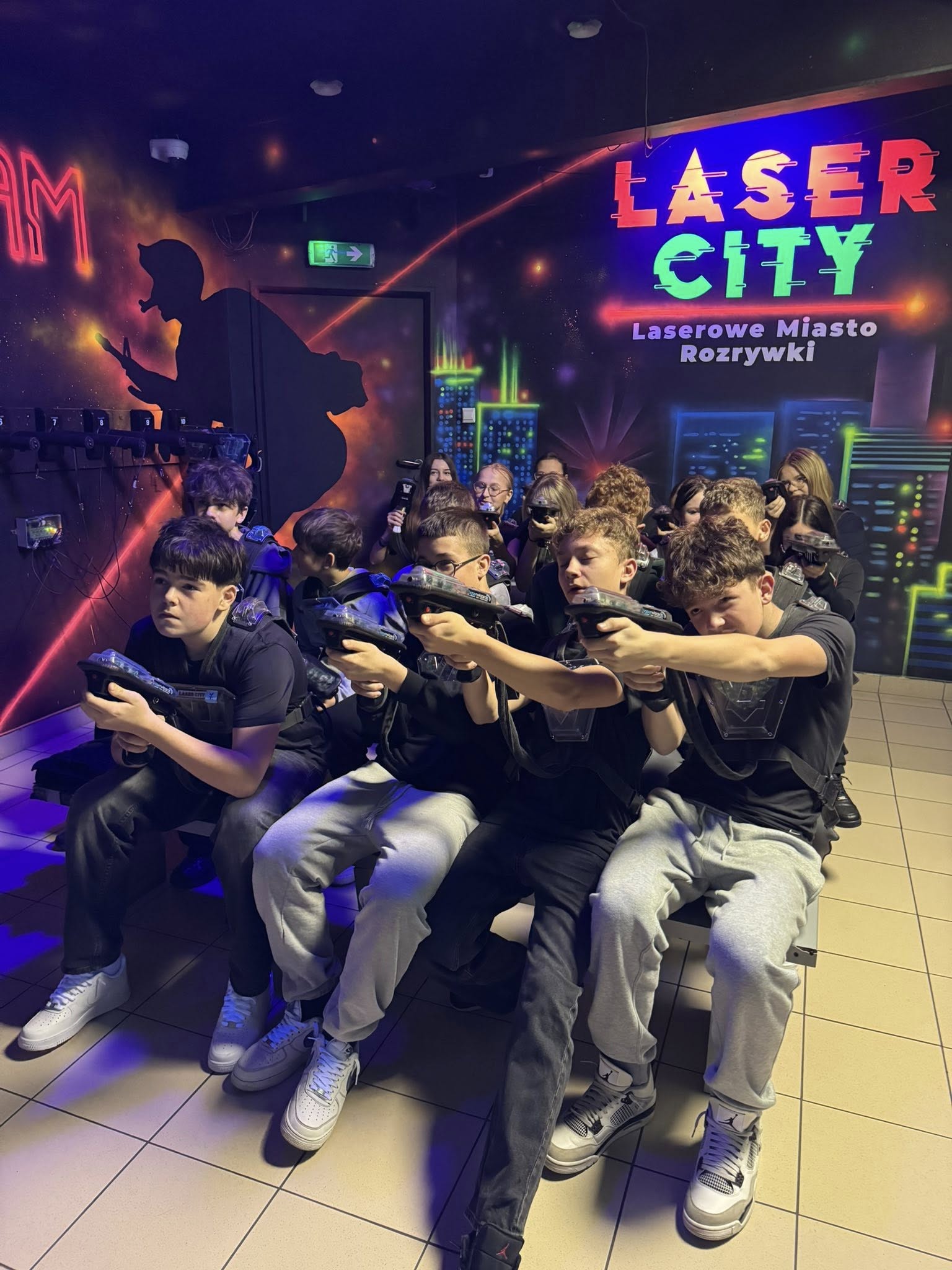 Dnia 23 października uczniowie klasy 8 udali się na wycieczkę do centrum rozrywki LaserCity w Lublinie. Celem wyjazdu była integracja zespołu klasowego oraz aktywne spędzenie czasu. Główną atrakcją była gra w lasertag, która dostarczyła uczestnikom wielu emocji i wymagała współpracy oraz strategicznego myślenia. Dodatkową atrakcją, która sprawdziła zręczność i szybkość uczniów, był laserowy tor przeszkód, na którym musieli unikać wiązek laserowych. Wycieczka przebiegła pomyślnie, a wszyscy uczniowie wrócili zadowoleni.