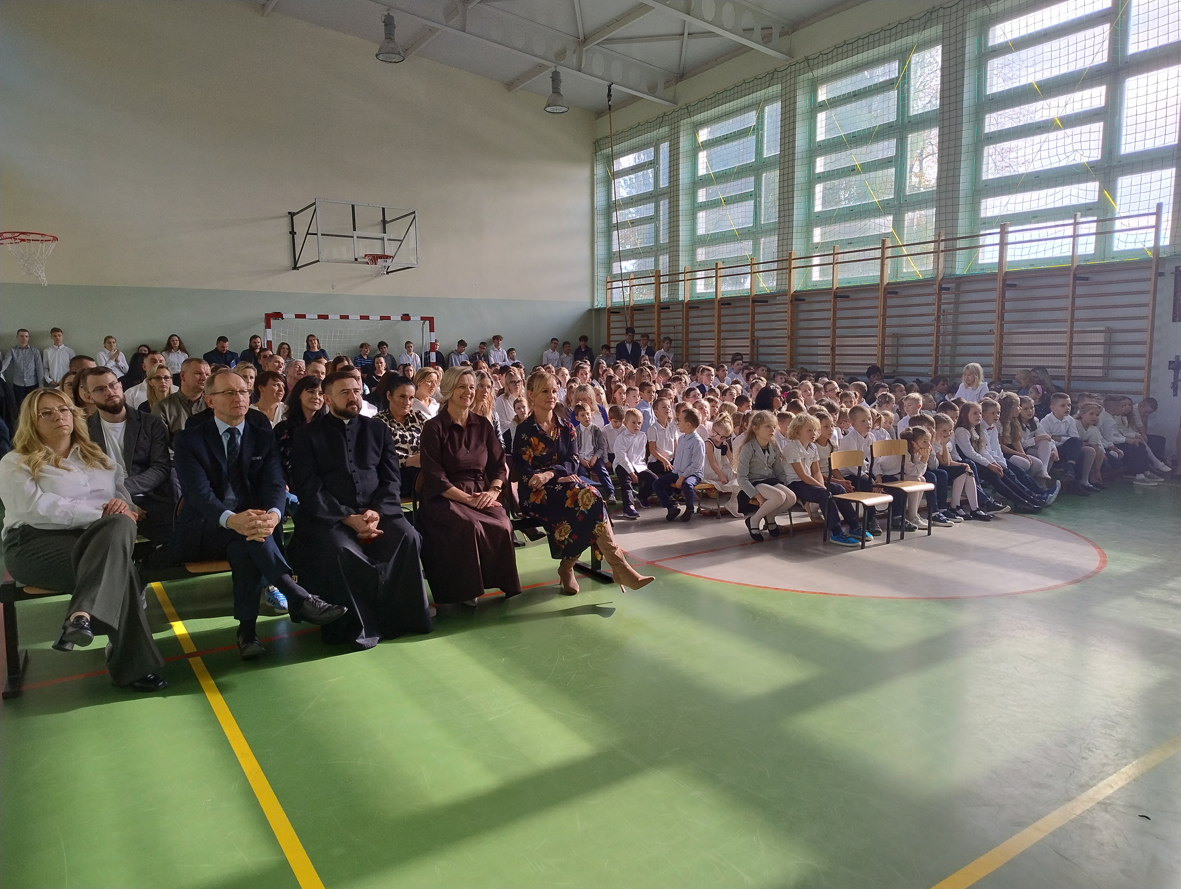 16 Października w naszej szkole odbyła się Uroczystość Pasowania na ucznia 1 klasy. Dzieci pięknie zaprezentowały się na forum szkoły. Wykazały się pięknym śpiewem , znajomością zasad bezpieczeństwa ruchu drogowego, sprawnego liczenia i czytania. Dzieci zostały pasowane na uczniów 1 klasy przez Panią Dyrektor i otrzymały wspaniałe upominki.